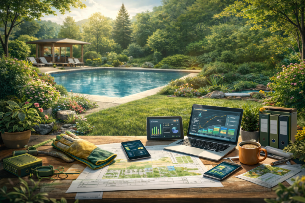 J’accompagne les entreprises du paysage et de la piscine de Haute-Savoie dans la gestion technique, administrative et opérationnelle de leurs projets.